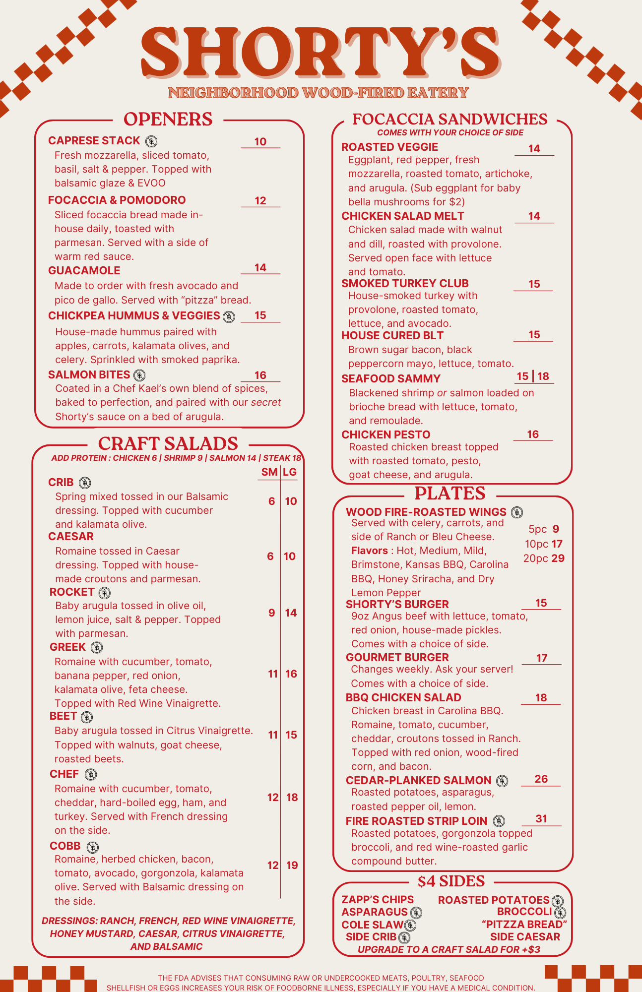Our cocktail menu features some unique creations that you can only get right here at Shorty’s. We also offer two rotating house creations that change for the season, or for a special event or occasion. Fresh juices, house made syrups, and locally distilled liquors are our go-to!